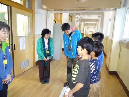 今日は,にじの子学級の森林教室のために森林インストラクターの方々が,来校されていたので,先日の森林教室でお世話になったお礼のお手紙を渡しにいきました。森林教室後,衣笠山の生きものについて調べ,学習発表会で発表するために練習しているので,ぜひ見に来てほしいということもお伝えしました。