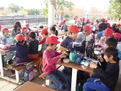動物見学の後は,みんなが楽しみに待っていたお弁当タイム。とってもおいしそうにご飯を頬張る子ども達でした。