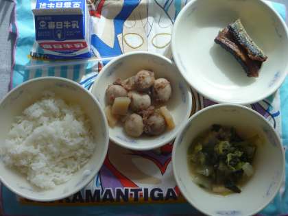 久しぶりのランチルーム給食です。給食語呂合せをして,昔よく出ていた給食のメニューを知ることができました。