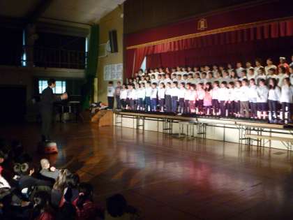 6年生が明日,学童音楽会に出演するので,その前に学校でプチ発表会をひらいてくれました。6年生の歌声に感動した子どもたちは「上手かった!」「自分たちもがんばって,6年生のように歌いたい!」といい表情を浮かべていました。