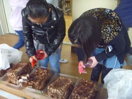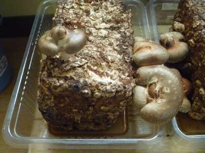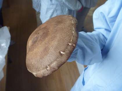 栽培しているしいたけの収穫がすすんでいます。残念ながら,まだ1つもしいたけの出てこない子もいるのですが,最近ようやく小さいしいたけが出てきている子たちもいるので,あきらめずに水やりを続けています。