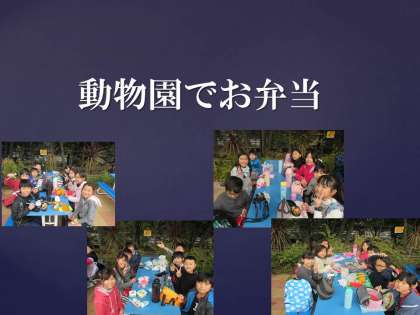 午前中の見学を終えてから,動物園でお弁当を食べました。