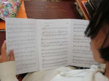 学童大音楽会の大成功からまだ1週間も経っていませんが,せっかくつかみ始めた声の質を忘れないうちにと,次の曲の練習に取り掛かりました。さらにレベルがあがり,なかなか難しそうな曲です。曲名は「ありがとう」。気持ちを込めて歌ってほしいと思います。