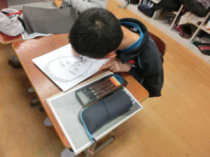 今日も,自分を見つめ,自画像に取り組みました。自分の写真をにらみながら,集中して取り組んでいました。素直な目で,自分を見ることが大切です。