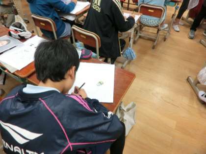6年図画工作「版画の下絵をかいています」