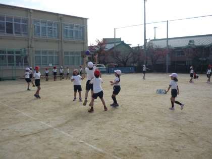 体育でパスゲームの学習を進めてきました。ルールにも慣れ,投げるのも受けるのも上手になりました。チーム内で声かけをしながら,ボールを回す様子も見られるようになりました。