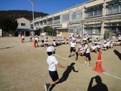 今週から,体育科の学習では『リレー遊び』をしています。昨日はリレーのやり方を覚えること,今日はバトンの渡し方を工夫することを目標に学習しました。折り返しリレーと,置き換えリレーの二種類のリレーを楽しんでいます。チームワークを大切に頑張ってほしいと思います。