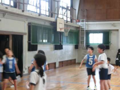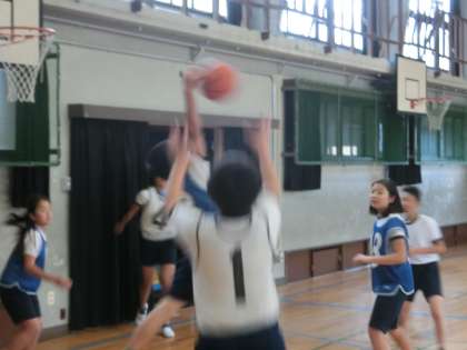 6年体育科「バスケットボール」楽しくやっています。
