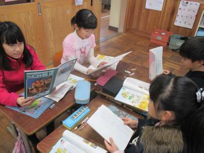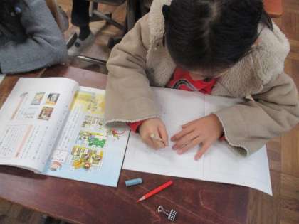 子どもたちは,教科書の挿絵を参考にしながら,場面の様子を思い浮かべて文を作っていました。