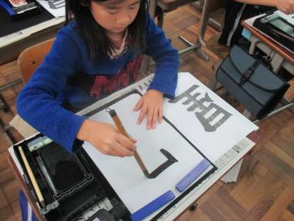「字のバランスを考える」や「はらいに気を付ける」など,文字の組み立て方の他にもそれぞれが自分のめあてをもって,学習に取り組んでいました。