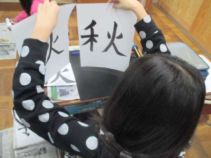 子どもたちは,「秋」と「星」のうち自分の書きたい方を選び,手本や教科書を見ながら一画一画丁寧に書いていました。