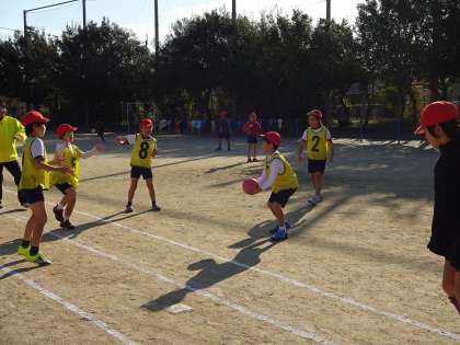 今日は,昨年から計画していた学年エンドボール大会でした。この前は,雨だったため実施できなかったのですが,今日はお天気も晴れで,朝からやる気満々の子どもたちでした。試合がはじまる前のチーム練習にも気合が入ります。