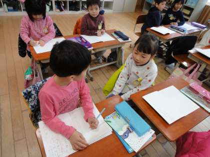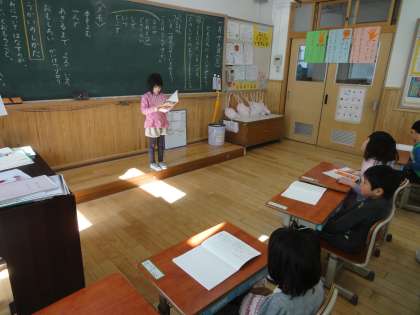 国語科の学習では,今一番楽しいと思うことを友達に聞いて,クラスみんなに聞いたことを分かりやすく発表する学習をしています。聞いたことの中から,大切だと思うことをメモし,メモを見ながらまとめて発表をすることに挑戦しました。初めての経験でしたが,どうやって言えばみんなに伝わるのか考えながら発表することができました。