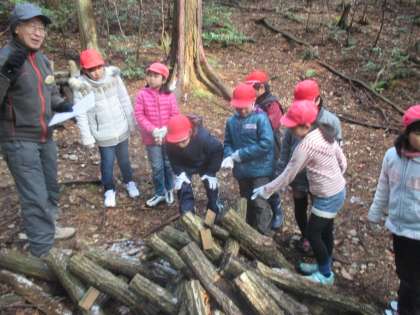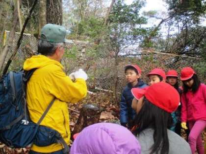 講堂でお話を聞き終わった後,巣箱を外しに衣笠山へ出発しました。