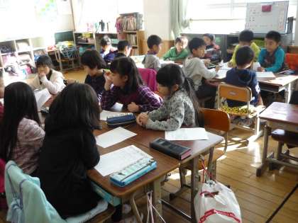 2月に生活科で町探検に行きます。前回は,夏に校区内のお店や施設を見学したりインタビューしたりしました。今回は,夏とは違うお店などを探検します。どんなことを調べようか,みんなで真剣に話し合いました。