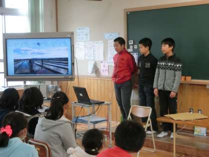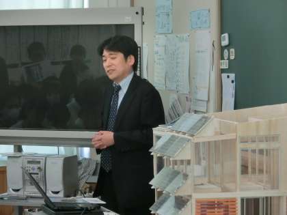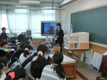 今日のはばたきでは,本校のエコスクールの改修事業に関わられた立命館大学の近本教授にご来校いただき,お話をうかがいました。改修事業にまつわることや,設計への思い,太陽光発電の仕組みなど,来週の子どもたちの発表に生かすことができる内容でした。ゼロエネルギーのモデルハウスの模型を持ってきて下さったので,子どもたちも興味津々で見ていました。