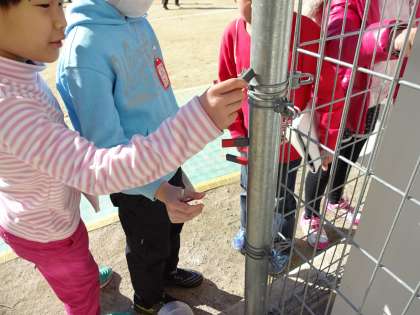 理科の学習で,「じしゃくにつくものが鉄である。」ということがわかり,今日は校庭にもじしゃくにつくものがあるのかを調べました。予想では,すべり台や雨水タンクの蛇口がつくだろうと思っていたのが,調べてみるとつかないことがわかり,子どもたちはいろいろな発見をしていました。