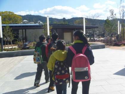 最高の天気でした。青空のもと,ちょっと寒かったですが,元気に岡崎めぐりに行ってきました。大きなトラブルもなく,無事に帰ってこられたのは,子どもたちの今まで培ってきた力だと思います。