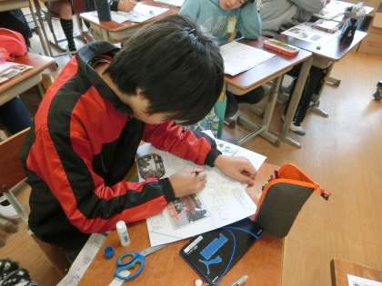 火曜日に行った岡崎めぐりの旅日記づくりに取り組んでいます。カラフルに色をぬって,一人一人個性のにじむ旅日記になりそうです。岡崎をめぐりながら撮影した写真やもらってきたパンフレットを貼ったりして,工夫をしています。参観日の時に掲示していますのでお楽しみに。