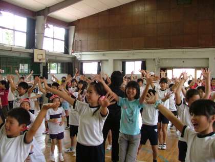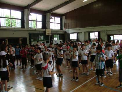 合同運動会最後の種目「みんなでダンス」の様子です。