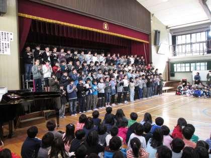 最後の6年生からは,リコーダーの演奏と歌のプレゼントをもらいました。これも心に響く,素晴らしい演奏でした。会の終わりは,みんなで6年生を見送りました。笑顔で講堂をあとにする6年生の姿が印象的でした。