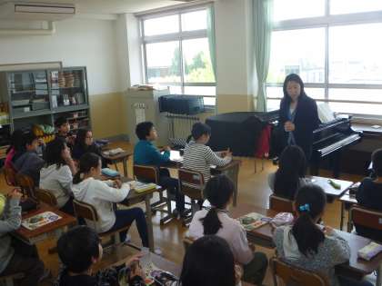 今年度も,昨年度の6年生に引き続き,スクールサポーターの井上先生に音楽の授業をしていただきます。自己紹介をした後,さっそく歌の練習をしました。井上先生に教わると,みるみる美しい歌声が響き出すことを感じられます。これからも,音楽の授業が楽しみです!!