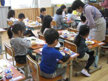 給食を楽しみにしていた子どもたちが多く,給食時間中,楽しそうに食事をする子どもたちの姿が多くみられました。初めての給食だった1年生も,これから,おいしく,たくさん食べて,大きく成長してほしいです。