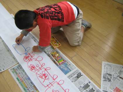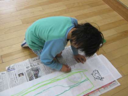 長い紙をうまく使ってのびのびとした絵を描くことができました。
