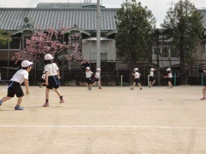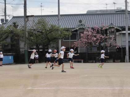 遊具遊びの後は,しっぽとりゲームを楽しみました。去年よりもよく考え,チームの友達と作戦を立てたり,協力したりする姿をたくさん見せてくれました。