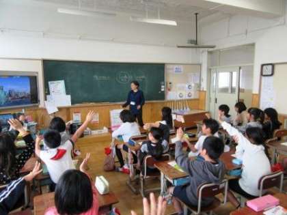 セシル先生の自己紹介では,子どもたちはジェスチャーなどから何を言おうとしているのか聞き取ろうとすることができました。