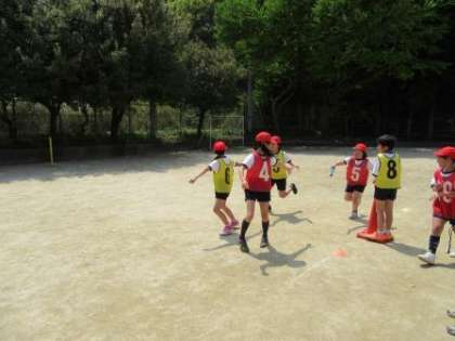 バトンパスになかなか苦戦している様子でしたが,なかには上手にできている子どももいました。