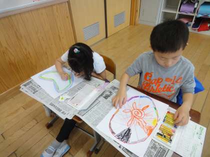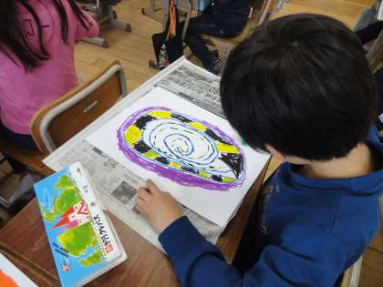 図画工作科で,「ひみつのたまご」という絵を描く学習をしました。今週は,パスで自分だけのたまごを描きました。色を混ぜたり,たまごの形を工夫したりとこだわりを持って描いたたまごに,子どもたちはとても愛着を持っている様子でした。来週は,たまごの中には何が入っているのか想像して描きます。とても楽しみです。