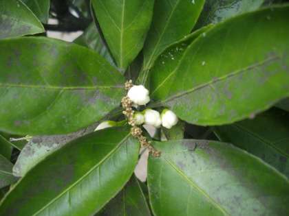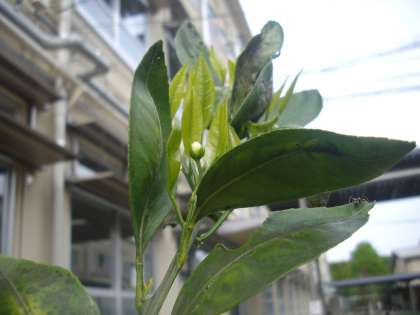 にじのこガーデンに植わっているみかんの樹につぼみがつきました。