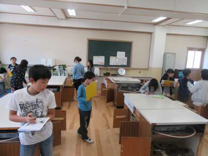 調理器具の名前と,置いてある場所を自分たちで家庭科室の中を見て回りました。