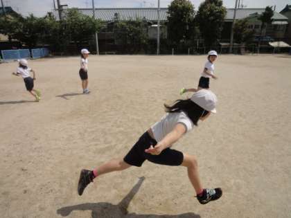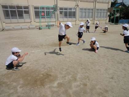 体育科では,「とびくらべ」の学習をしています。誰が一番遠くまで跳ぶことができるか比べたり,高く跳べるか比べたりしました。ゴムとびでは,ゴムを持つ人ととびくらべをする人をグループの皆で相談しながら協力して活動できました。