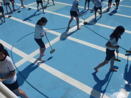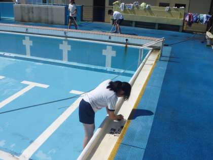 昨日はとても良い天気でしたので,掃除中に水が少しかかっても気持ちいいくらいでした。最後のクラスが掃除をした後には,すぐにでも使えそうなきれいなプールとなりました。