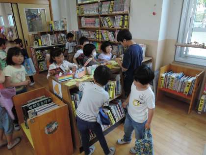先日,図書室の使い方を勉強して,はじめの1冊を借りました。さっそく,休み時間に図書室に行って2冊目,3冊目を借りる子どもがたくさんいました。