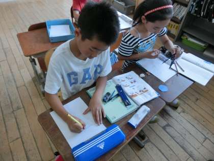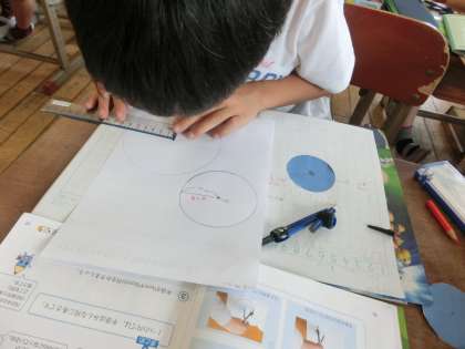 子どもたちは,コンパスの扱いにだんだん慣れてきました。今日は,半径の大きさを決めて,白い紙に円をえがきましたが,3分の1くらいの子どもが上手にかけていました。これから練習を重ねて,技能を高めていきたいと思います。