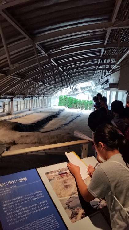 語り部さんのお話を聞いた後,今も保存してある野島断層を見学しました。地震で地面が大きく動いたことを知り、大変驚いた様子でした。実際の地震の揺れも体験しました。自然の恵みの素晴らしさだけでなく,自然のおそろしさも感じることができた,貴重な学習でした。