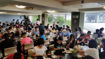 バスの中から「おなか減った〜。」と言っていた子どもたちにとっては,待ちに待ったお昼ごはんです。かなりのごちそうです。大鳴門橋の見える,「道の駅うずしお」のレストランでいただきました。しっかり食べて,午後からの活動に備えます。
