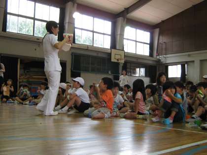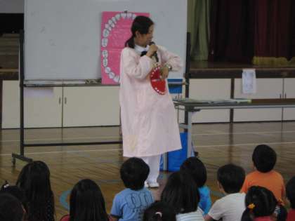はみがき巡回指導の第2弾は,にじの子学級と2年生のみんなです。8日(木)の3校時に行いました。1年生と同様に,歯をていねいに磨くことの大切さや磨き方を教えていただきました。