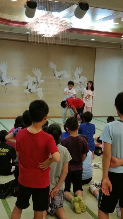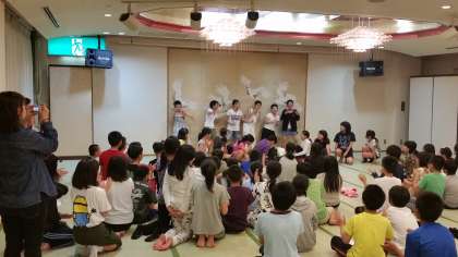 夕食を済ませた後は,これも子どもたちが楽しみにしていたレクレーションの時間です。ゲーム、劇、パフォーマンスなど楽しい時間を過ごそうとアイデアをこらした会にすることができました。