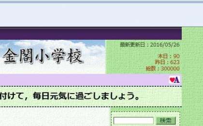 本日の午前中に,金閣小学校のホームページへのアクセス数が300000件を超えました。昨日と一昨日,6年生が修学旅行にでかけていましたが,その間も,毎日600件を超えるアクセス数で,たくさんの保護者の方や地域の方に,学校のホームページをご覧いただいていました。ありがとうございます。