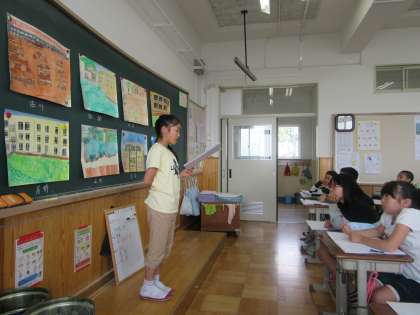工夫したところや,なぜその場所を選んだのかを発表し,絵の良さについて意見を発表し合いました。