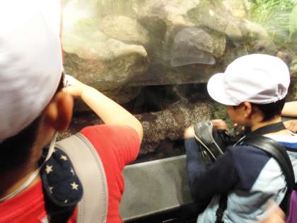 水族館へ着いてからは,展示されているオオサンショウウオや,