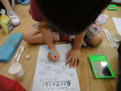 今日は養護教諭に歯磨き指導をしていただきました。まずは,6才臼歯について学びました。鏡を見ながら,自分の6才臼歯は立派に生えてきているか確認しました。また,虫歯についての話もしていただきました。