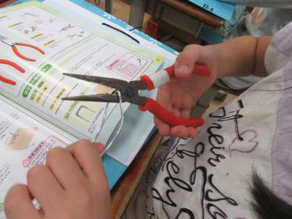 今回はラジオペンチの使い方を知り,使いこなしがら,アルミの針金を曲げていきました。