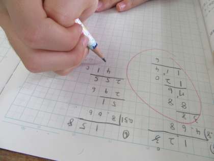 そこでわりきれないときの商を表す時どうするか考えたときに,「四捨五入すればよい。」ということに気づきました。