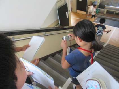 グループ毎に校舎を歩き回り,デジタルカメラで記録しました。
