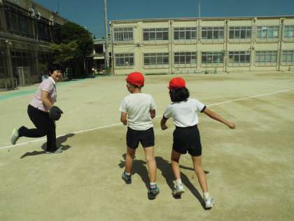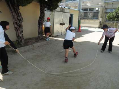 今日はかけっこをした後,大縄跳びに挑戦しました。